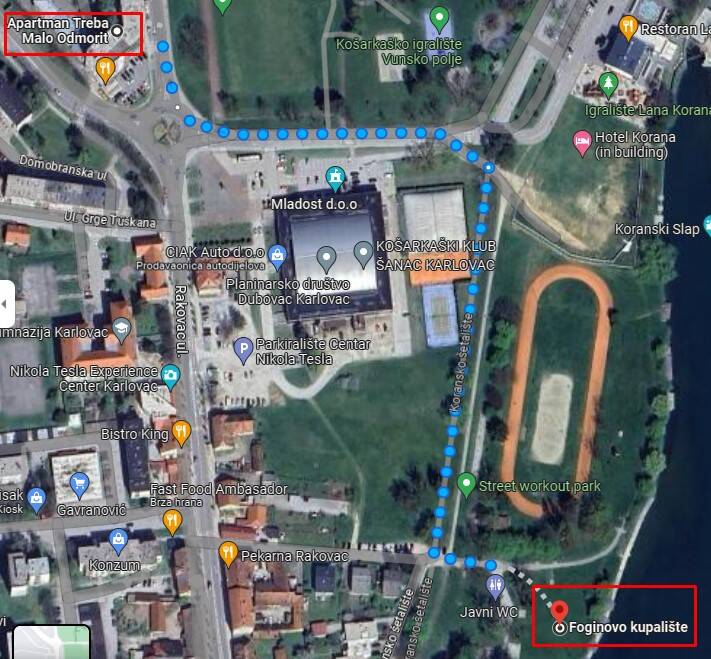Foginovo kupalište udaljeno je samo 5 minuta hoda od našeg apartmana Treba Malo Odmorit.